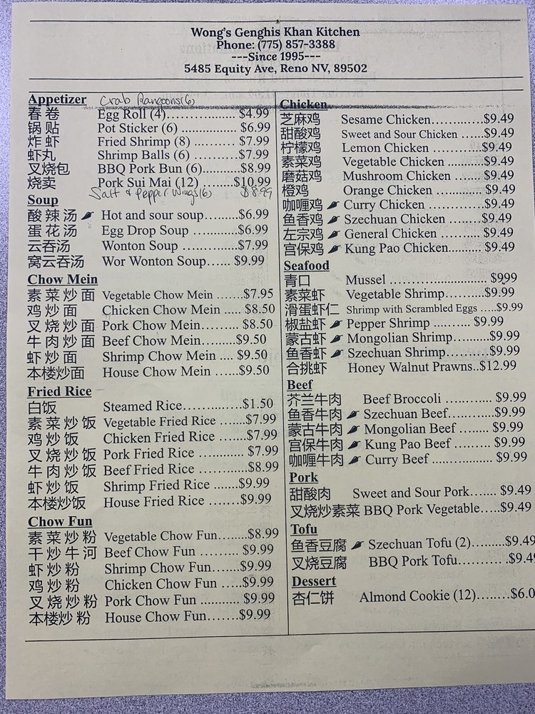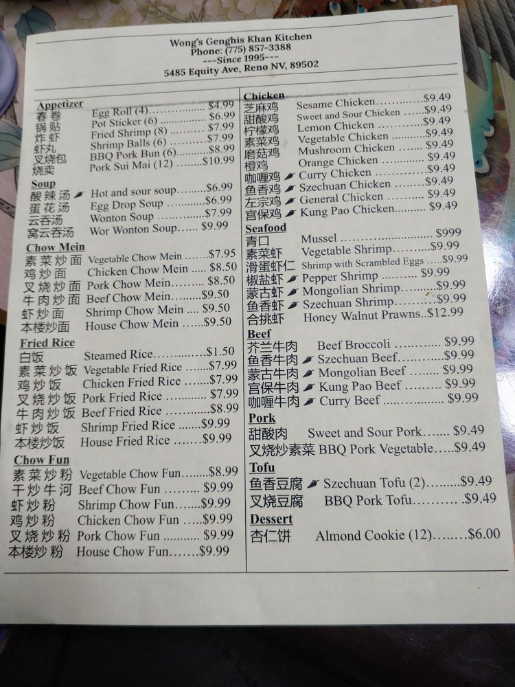 Welcome to Wong’s Genghis Khan, a unique food truck parked in the heart of Reno, NV. Specializing in Mexican cuisine, Wong's ignites your taste buds with a flavorful twist inspired by traditional recipes. Their menu boasts a vibrant selection of dishes that celebrate the bold flavors of Mexico.